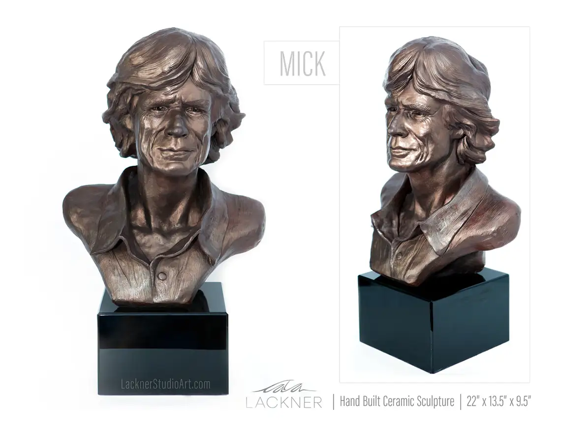 Hand built ceramic sculpture finished with bronze patina. Mounted on black melamine base. This bust is part of a private collection in honor to one of the most talented rock and roll artist of all times.